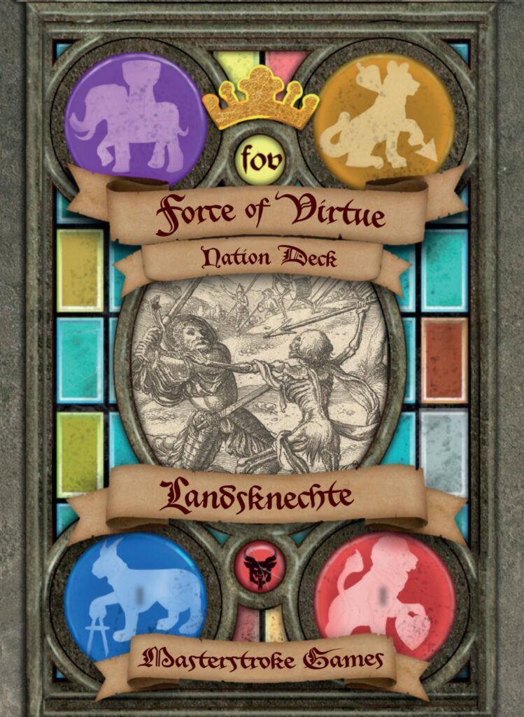You can dive in now with our tutorial missions that are downloadable from our website for free with some sample scenarios and listst! If you want to start playing Force of Virtue on a budget you will need a rulebook and at least one nation deck, that’s all you need to get started technically and will give you a start for under 25 pound/Euro. You will need to find your own dice and tokens. If you want to dive into the game in it’s full glory we also sell starter sets that include, tokens, virtue dice, reference sheets, rulebook and 5 decks! Great value and more than enough for two people to play the game in high style! All our products can be ordered from our page here.