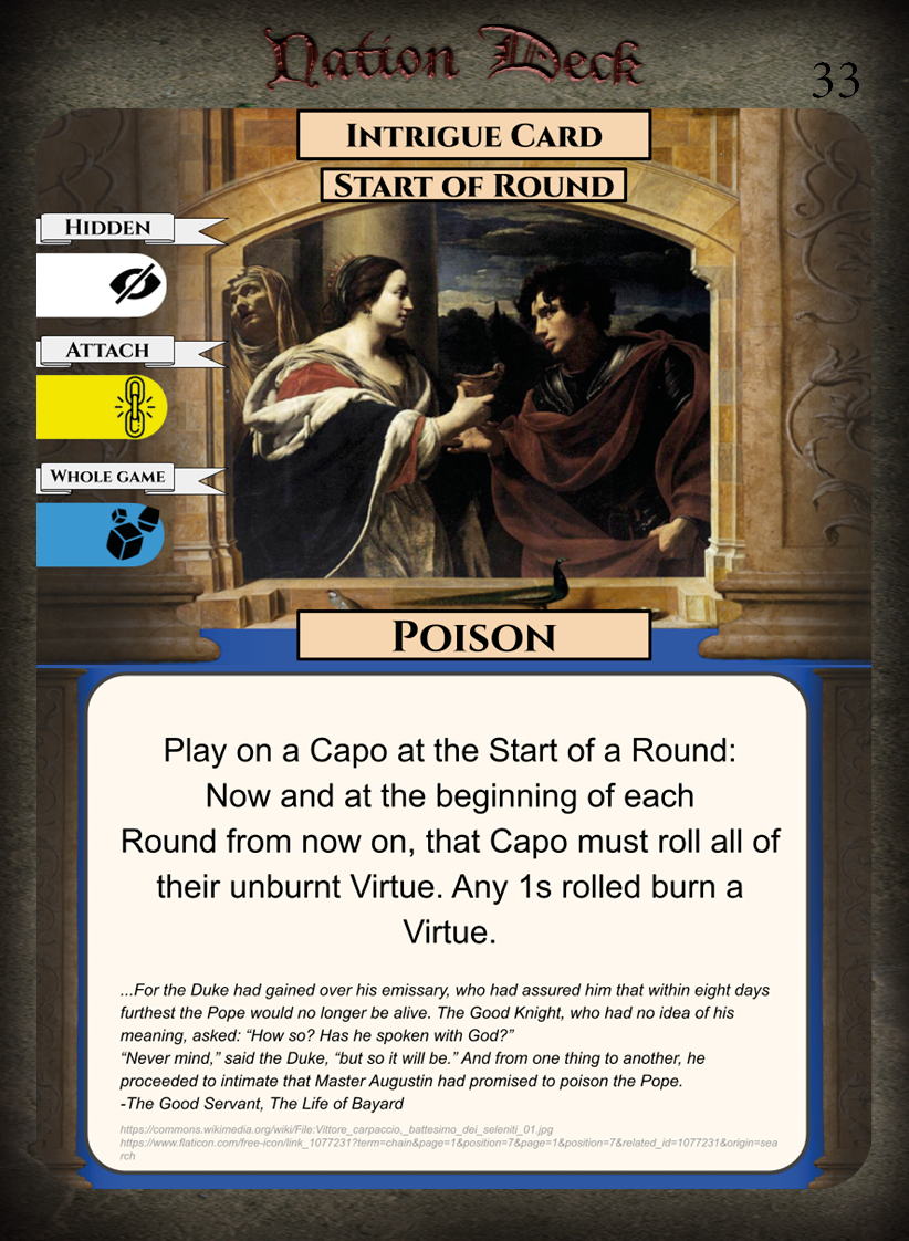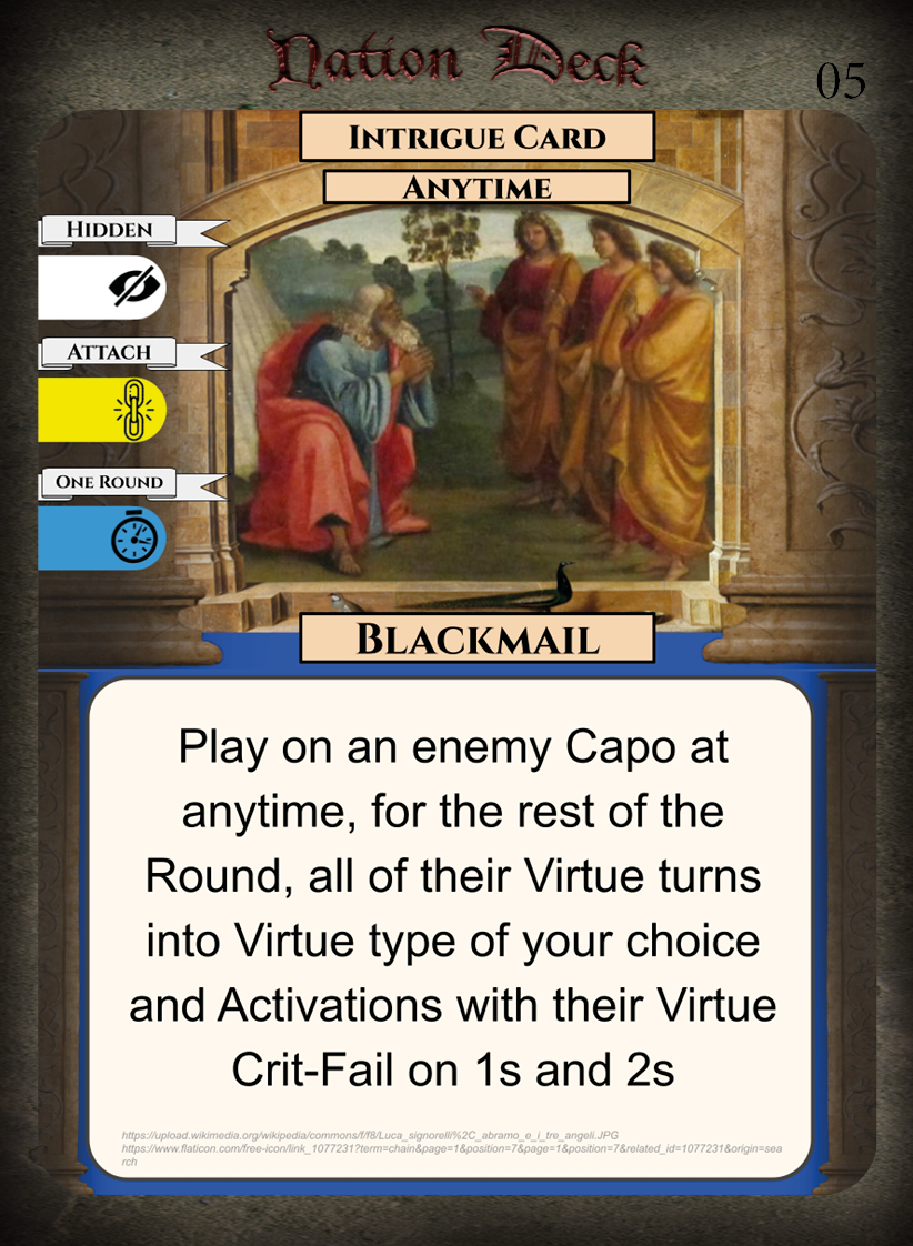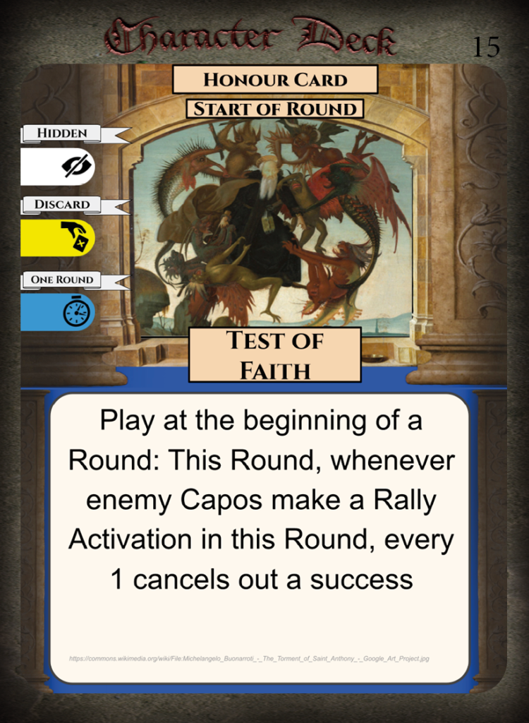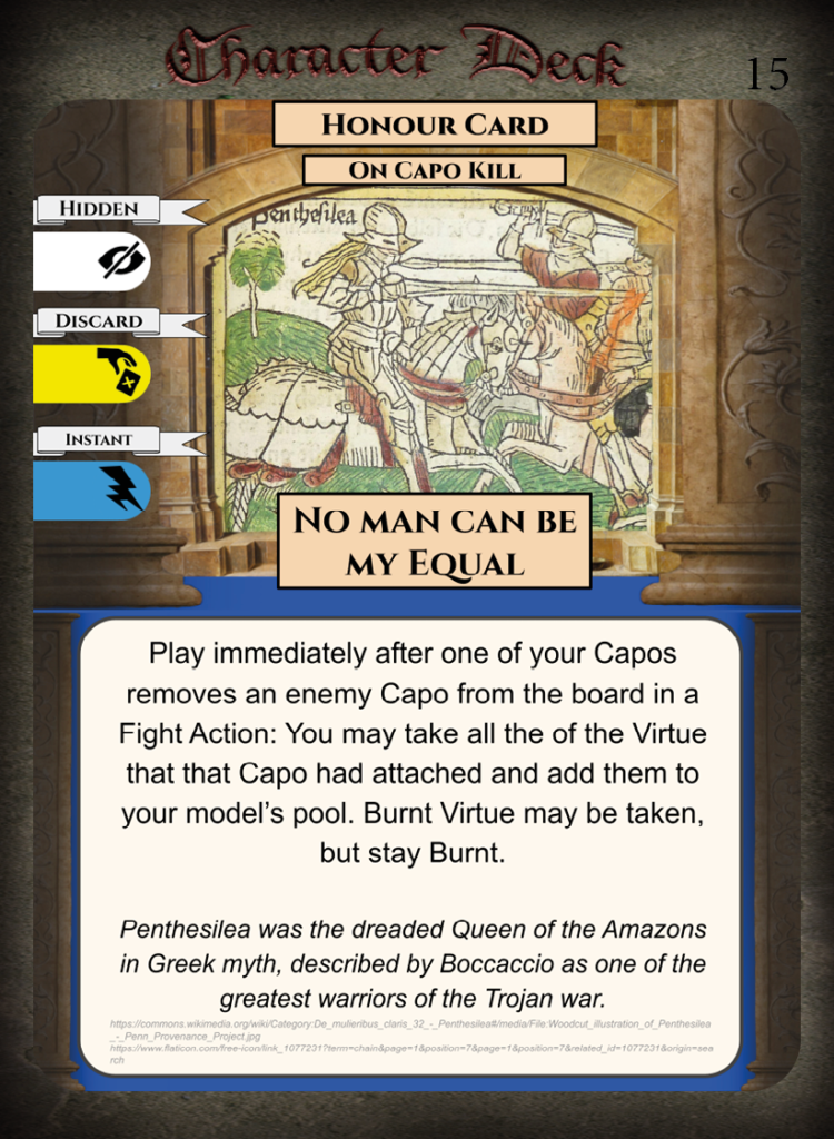 • Weaknesses – Low amount of Virtue cards, few Honour Cards for capos.