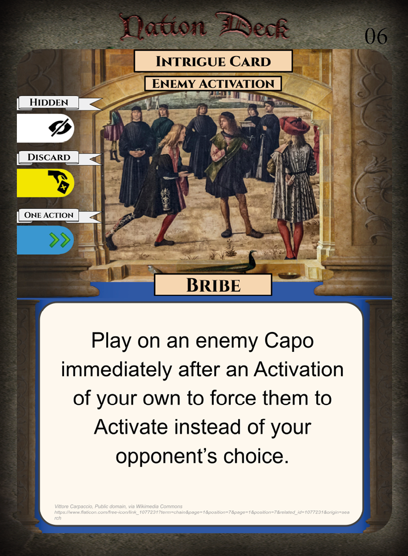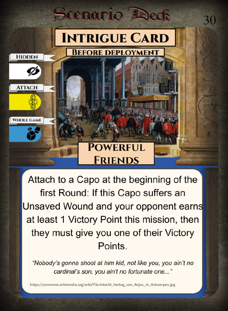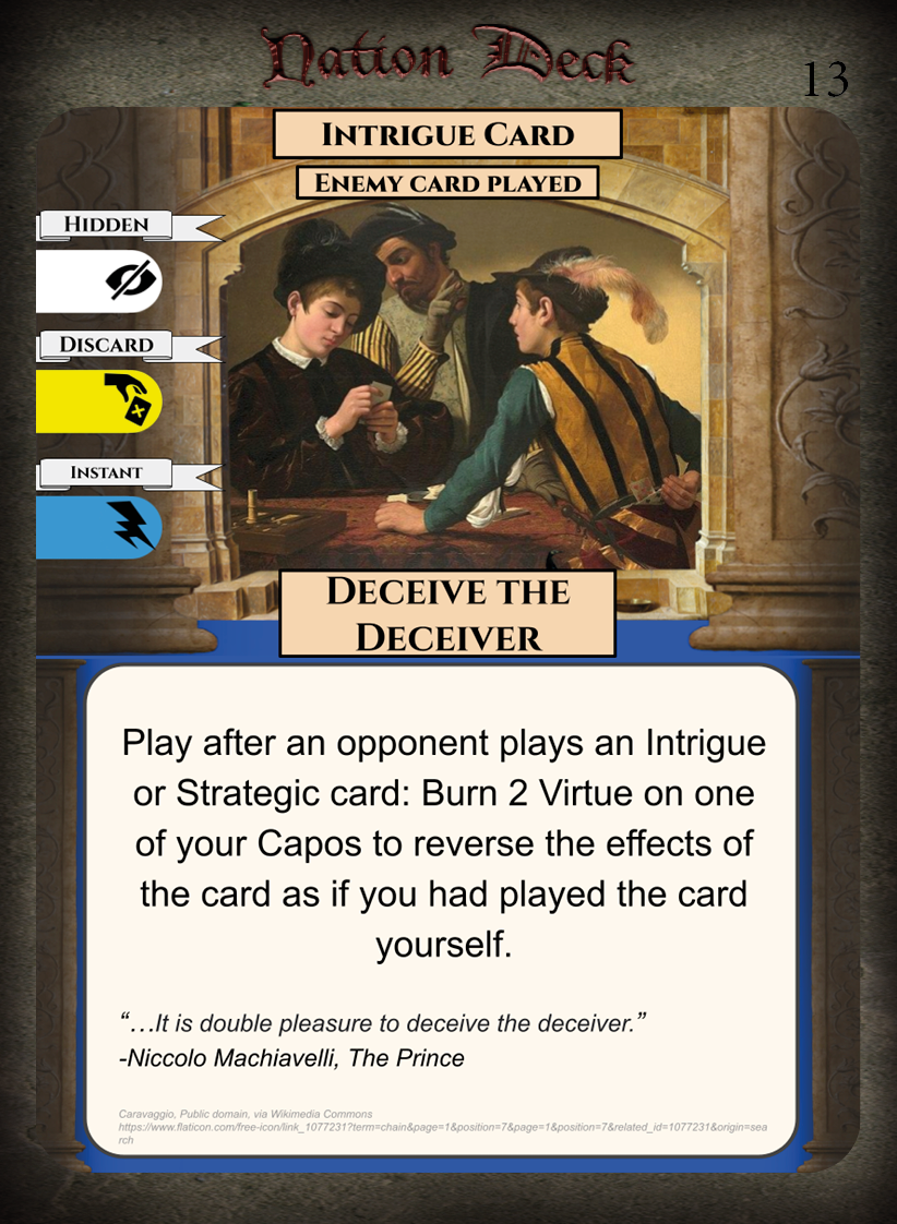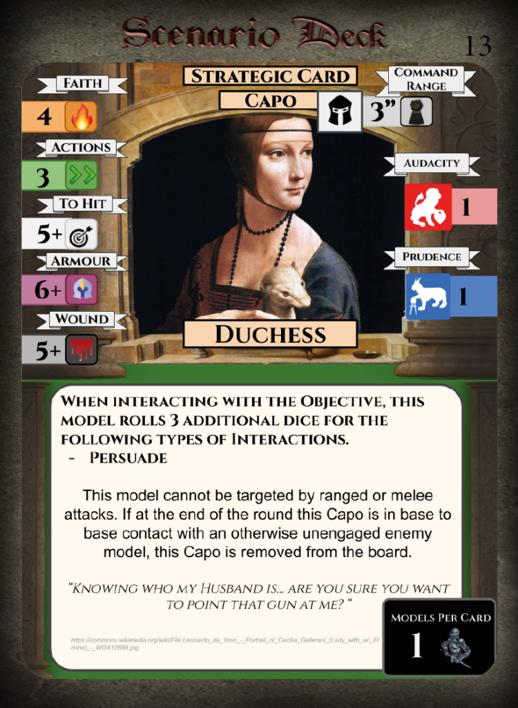 • Weaknesses – Low amount of Virtue cards, few Honour Cards for capos.