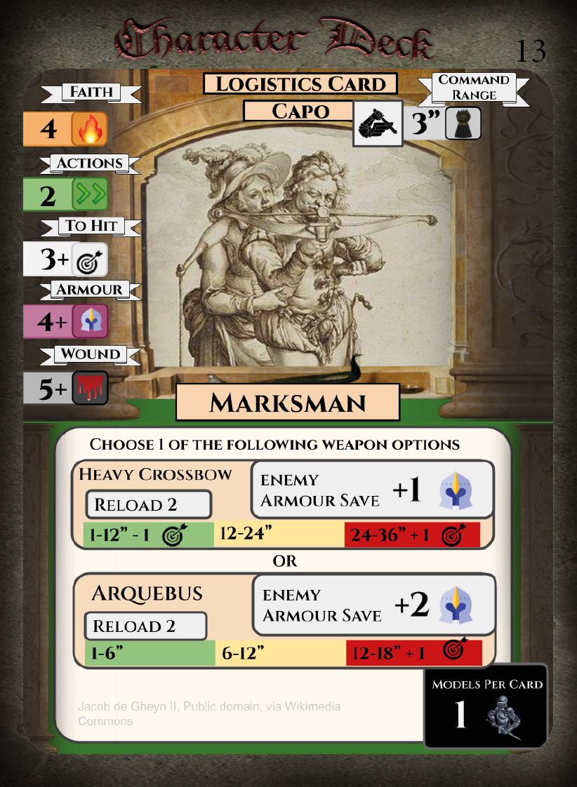 Character Decks give your force some added flavour and are based on common descriptions of mercenary bands at the time!