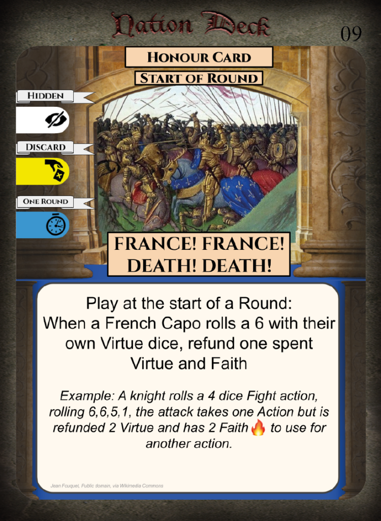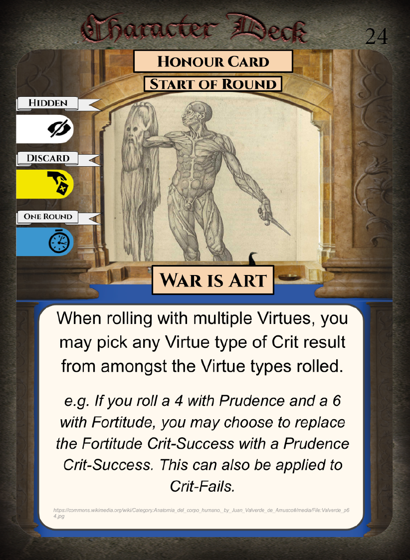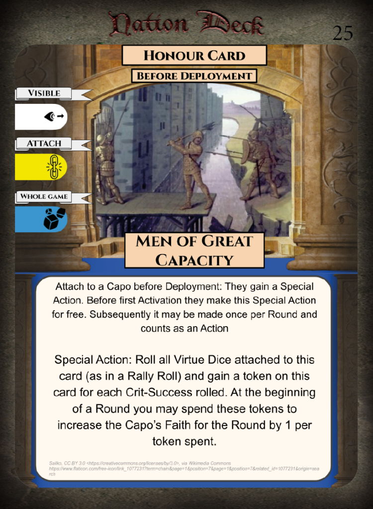 • Strengths – Honour Cards for mercenaries, Virtue Cards, Strategic Cards, Equipment Cards for mercenaries.