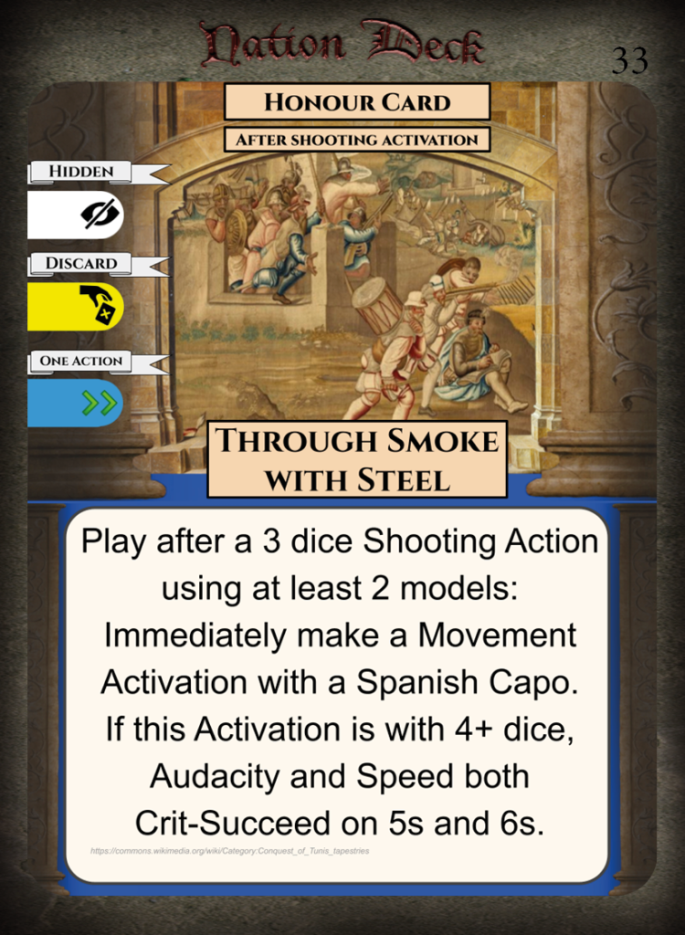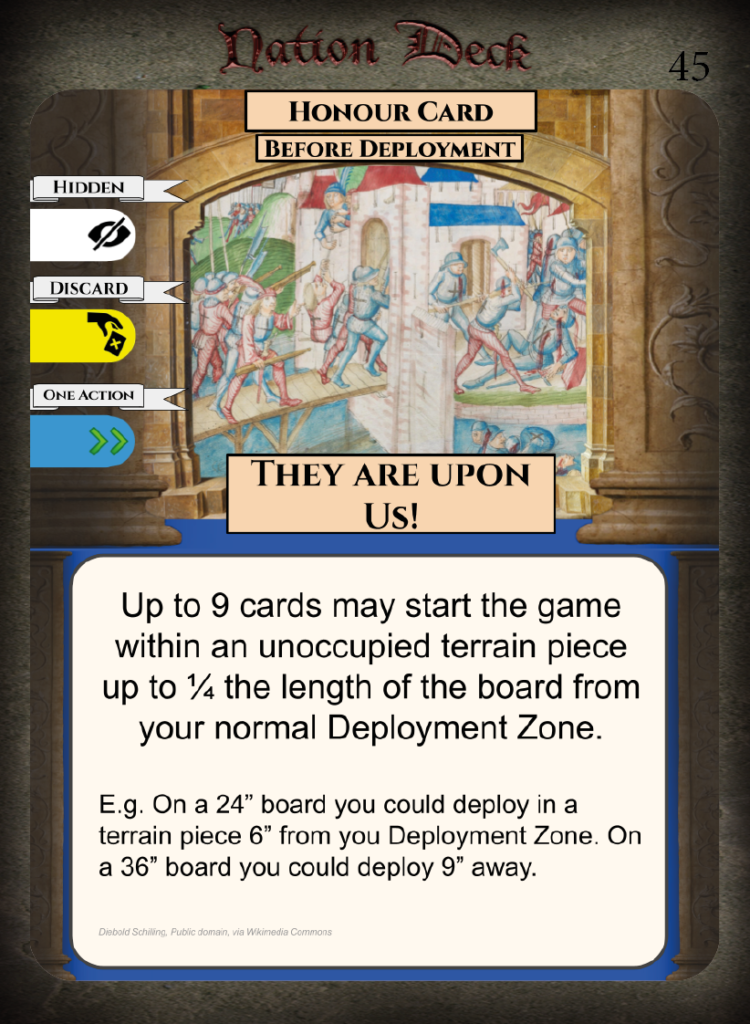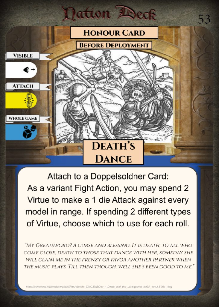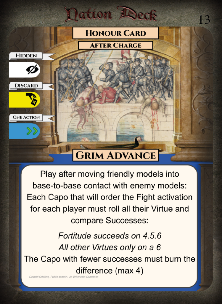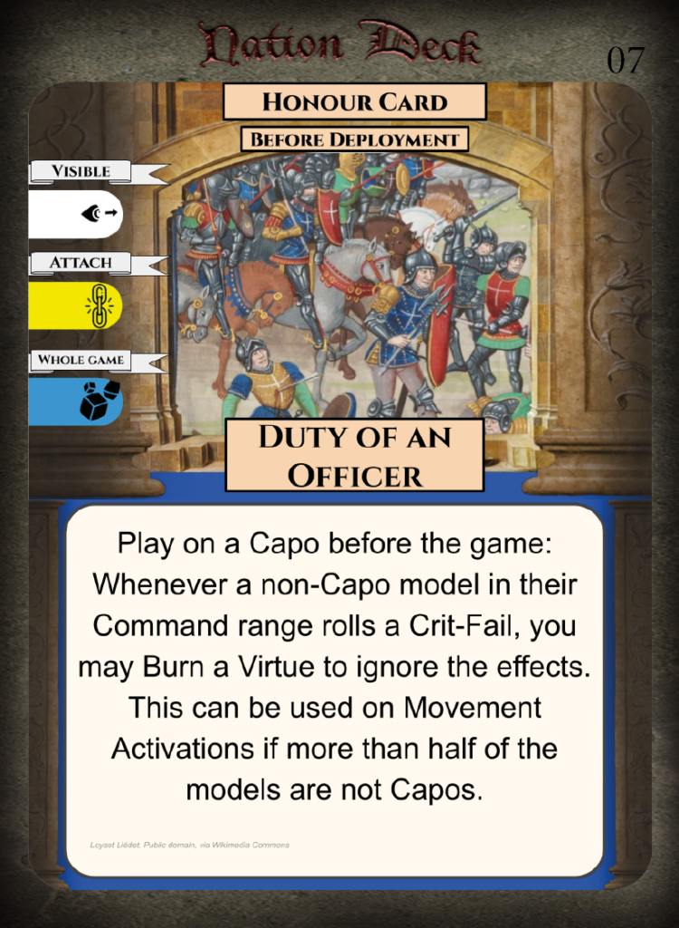 • Strengths – Good offensive Honour Cards for mercenaries, can prevent enemies rallying.