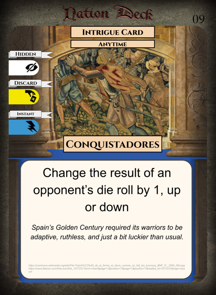 Spain, or, better said, the crowns of Castile and Aragon, have long struggled with each other for control of the peninsula, who knows what they could accomplish united? From the legions of Rome to El Cid, the Iberian sun has tempered both man and metal to formidable strength. Whittle your opponents down with withering fire before you strike, drill and Toledo steel will prevail!