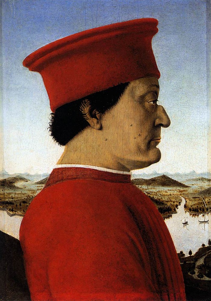 Some things may not be as they seem, however. Rumours circulated that Federico may have schemed to depose the previous ruler of Urbino, using his cunning and political acumen to secure his own power. Some also whisper his record of invincibility may come from quietly disappearing from the side of a losing employer the moment the wind turns bad rather than sticking with his employer till the bitter end. While these allegations were never proven, they cast a shadow over Federico’s otherwise spotless reputation.